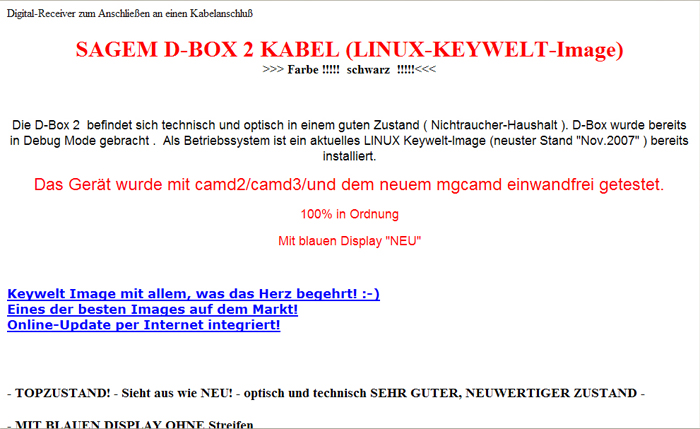 Sagem D-Box 2 KABEL LINUX KEYWELT DEBUG-MODUS " TOP "