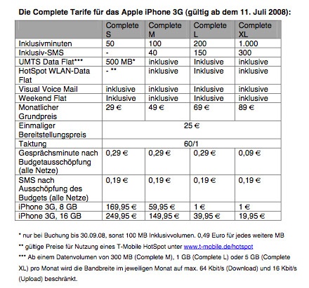 Beim Einsteigertarif von 29 Euro im Monat müssen 169 Euro für das iPhone 3G bezahlt werden, berichtet die Welt am Sonntag. Das iPhone der ersten Generation kostete im Sonderangebot zwischen 99 und 249 Euro, mit 16 GByte Speicher sogar 499 Euro, unabhängig vom gewählten Tarifmodell. "Wir wollen jetzt den Massenmarkt erreichen", sagte T-Mobile-Deutschland-Chef Philipp Humm der Zeitung. Wie Golem.de aus der Welt-am-Sonntag-Redaktion erfuhr, handelt es sich um ein Preismodell für das 8-GByte-Modell des iPhone 3G. Für die 16-GByte-Ausführung befinde sich "T-Mobile noch in der Preisfindung".