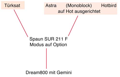 Schüssel 1 Türksat = (DiseqC) LNB1