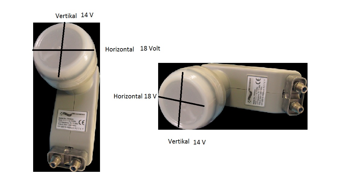 Bei diesem Kerl bekomme ich nur dann BILD, wenn das LNB so eingestellt ist, dass die Kabel zur Seite hin schauen.