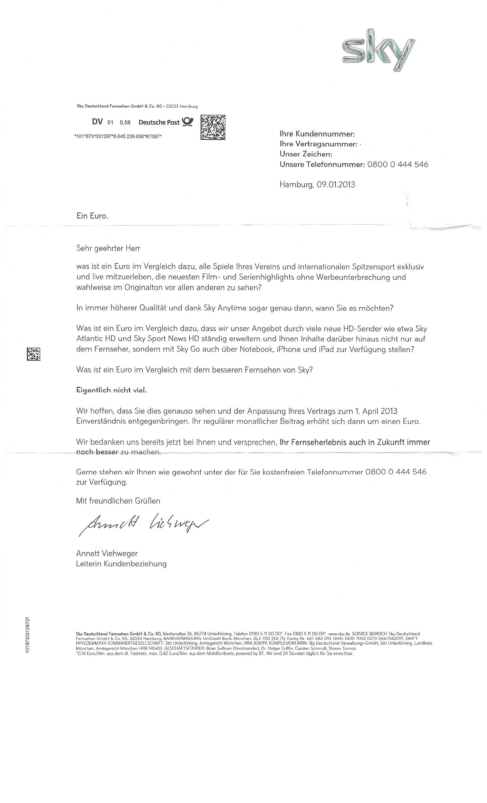 SKY macht nichts anderes wie die Versorger von - STROM, GAS, INTERNET + TELEFON + HANDY Anbieter.