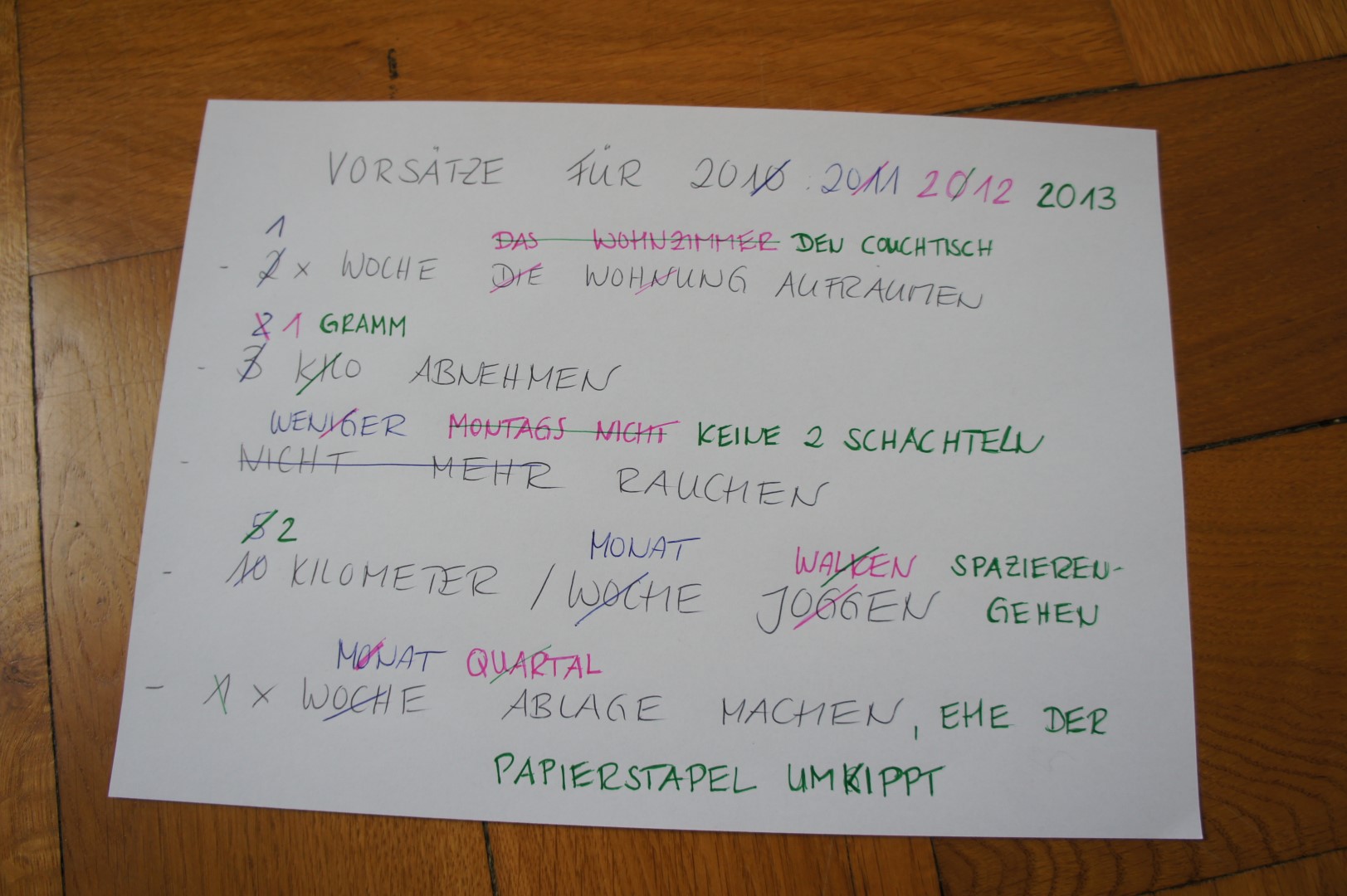 Hier sind meine Vorsätze vom letzten Jahr. Dieses Jahr habe ich mir vorgenommen keinen mehr zu schreiben.