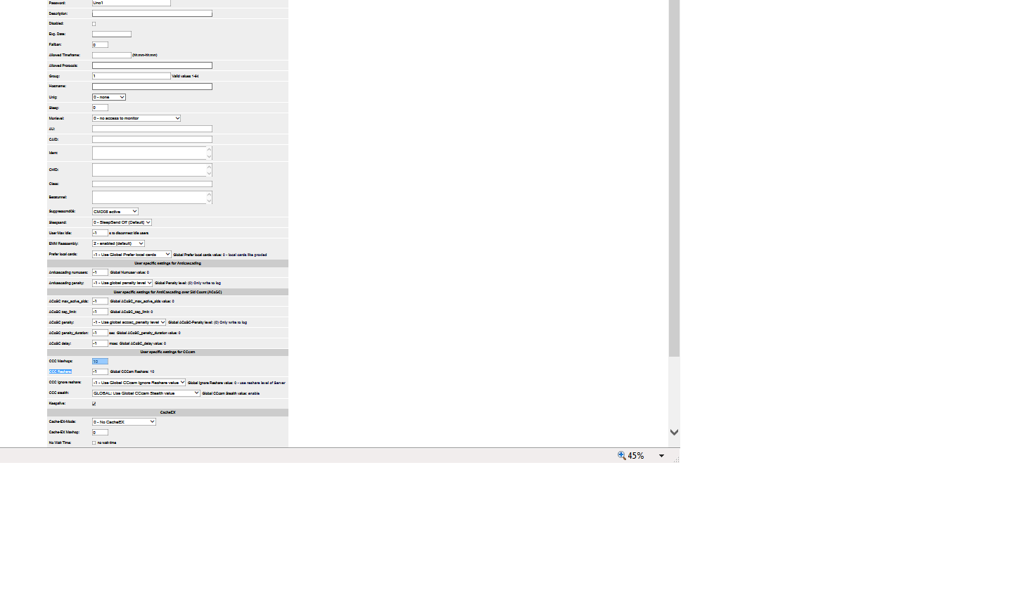 Er trägt in seine cccam.cfg folgendes ein...