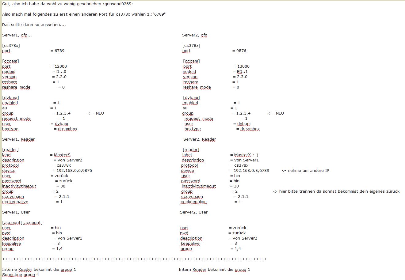 Stelle gerade alle meine Receiver auf oscam um. Beim Connecten untereinander stecke ich gerade ein wenig in der Klemme und komme nicht wirklich weiter.
