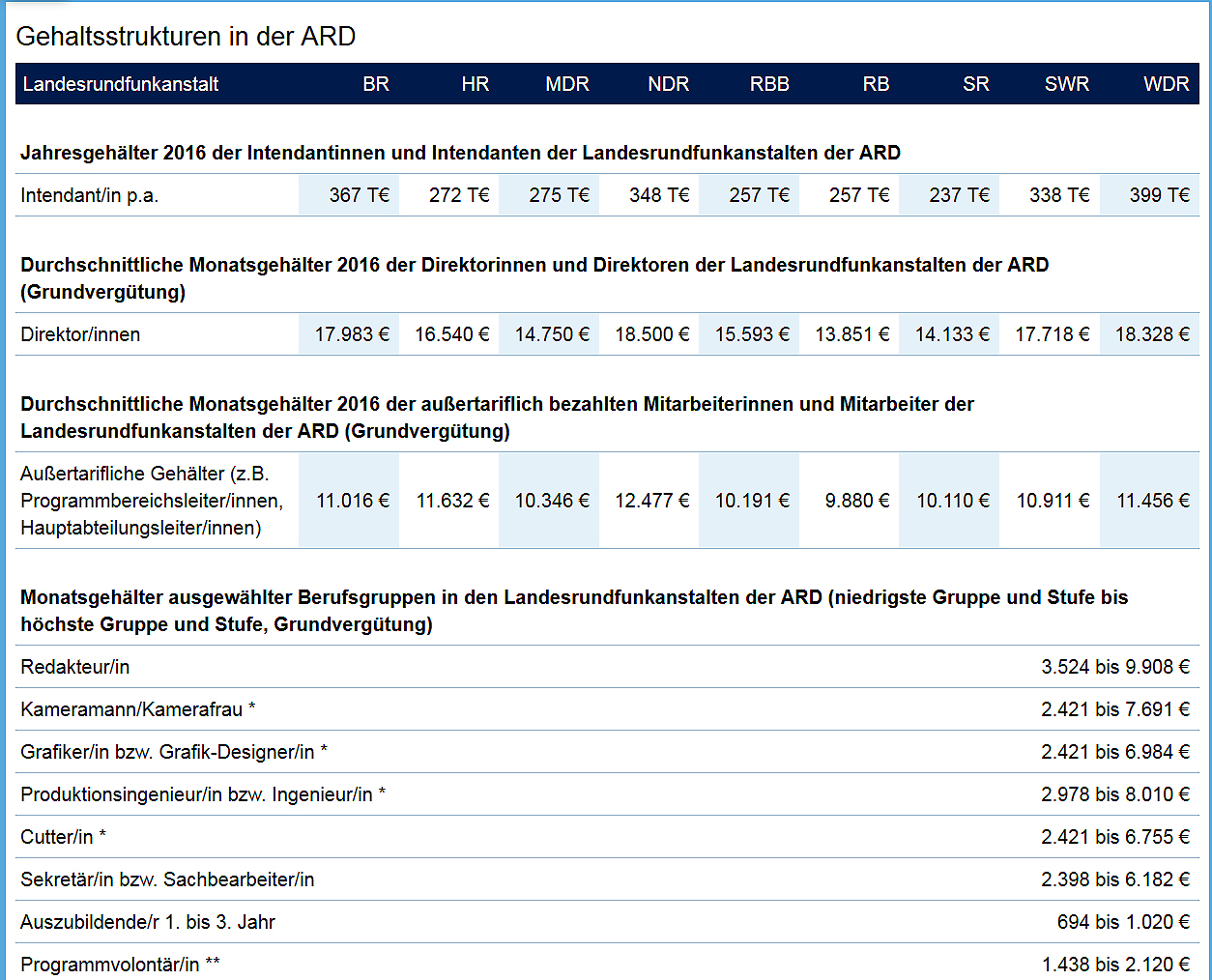 Landesrundfunkanstalt Jahresgehälter 2016 Intendant/in p.a.