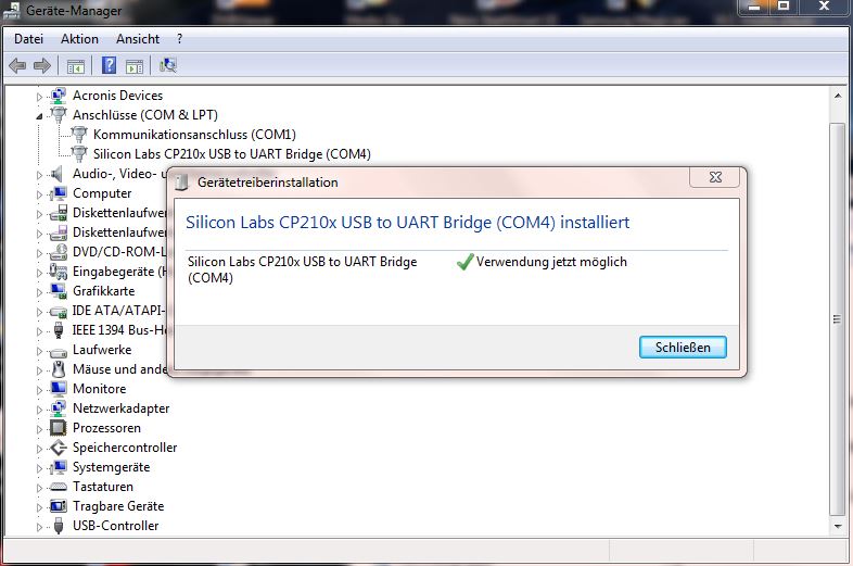 1) Treiber auf dem PC installieren (CP210x_Windows_Drivers)