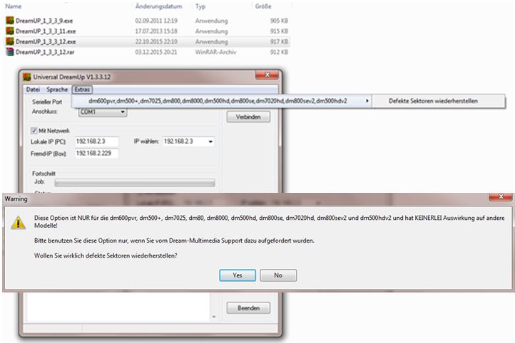 Nimm mal ein Nullmodemkabel und flashe mit DreamUp.