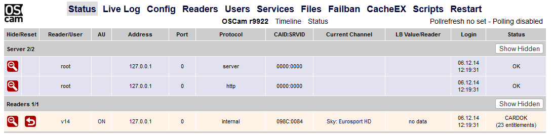 >> OSCam << cardserver started at Sun Apr 12 19:34:54 2015