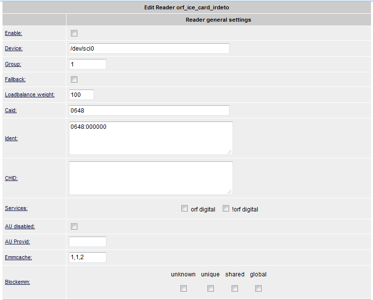 Das mit dem ORF Readersetting ist schon so eine Sache: - Es gibt in meiner OSCAM drei davon: