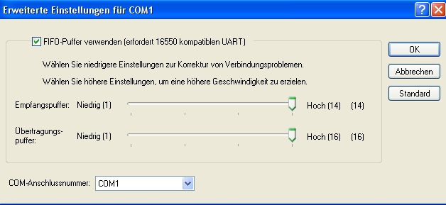 Schau mal in deinen Gerätemanager nach, wie da die Com1 eingestellt ist.
