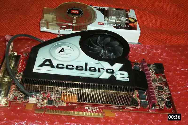 Es ist ein Accelero X2 von Arctic Cooling montiert, der Originalkühler ist auch dabei.