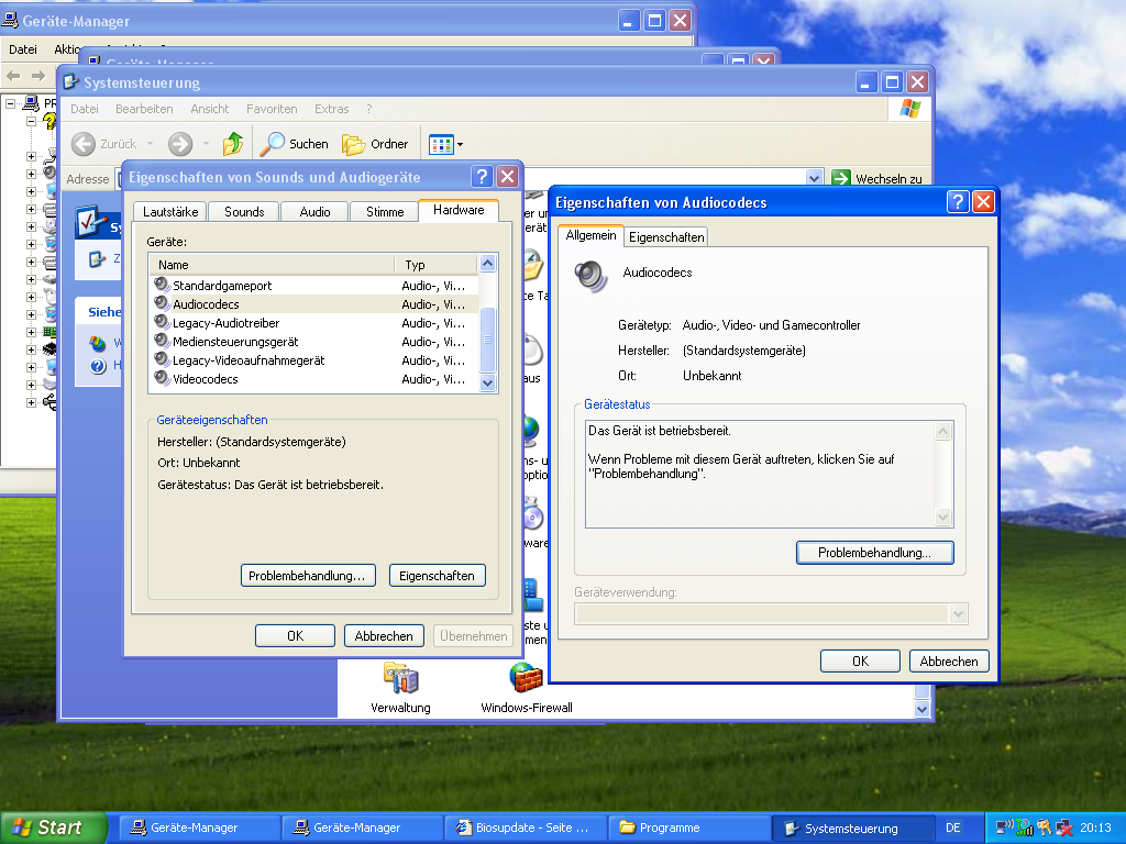 Wegen dem Soundtreiber, versuche mal, nicht manuell zu installieren, wähle mal "automatische suche". Geht das nicht, versuche den Ort des Treibers anzugeben.