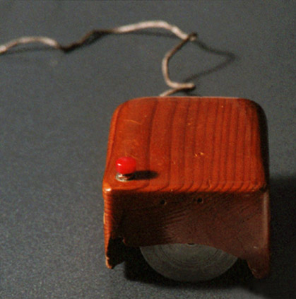 Geräts bestand aus einem klobigen Holzkästchen mit einer roten Taste zum Klicken sowie im Inneren