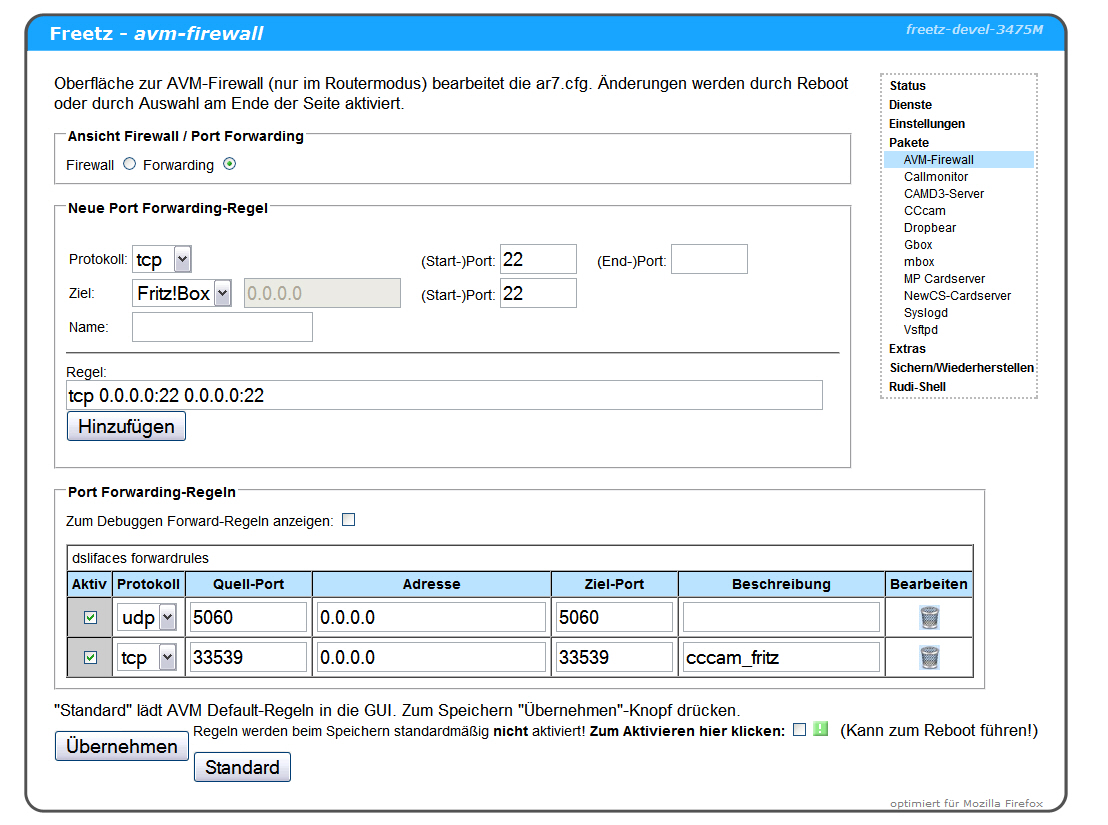 5. danach soll es in der Freetz so ausschauen:
