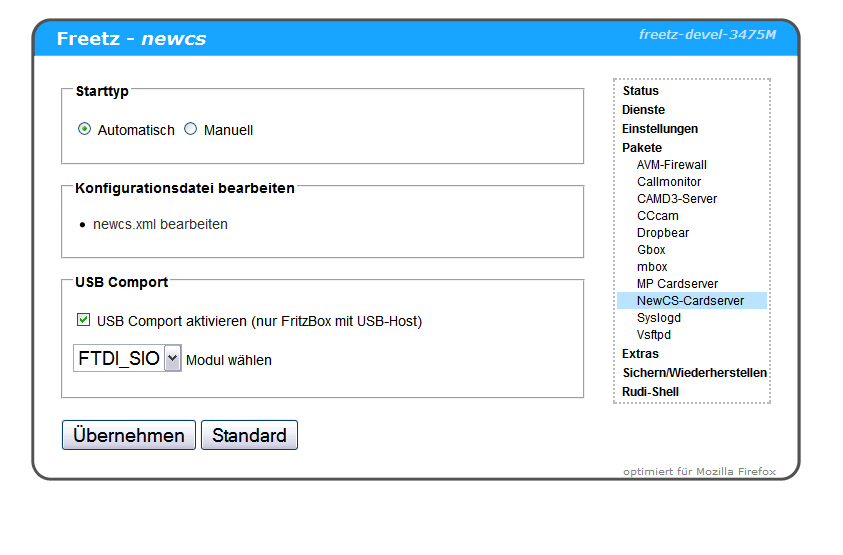Freetz mit CCcam und DBox2 (im Schlafzimmer) laufen - 1a (smartreader+)