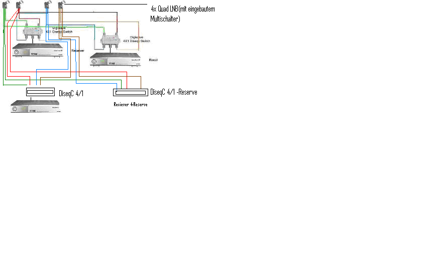 und noch 2 DiseqC 4/1 dazu. Bei fehlendem Pegel noch eventuell einen