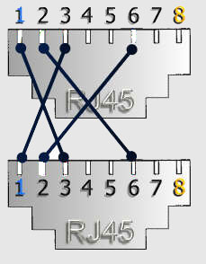 Bei einem normalen Patchkabel ist die Pinbelegung 1 zu 1 (Bild 1). In der Regel sind die Stecker transparent, du kannst die einzelnen Farben der twisted pair Verkabelung also sehen. Ist die Reihenfolge der Farben an beiden Steckern identisch, handelt es sich um ein normales Patchkabel. Bei einem Crossoverkabel sind Pin 1, 2, 3 und 6 über Kreuz verdrahtet (Bild 2).