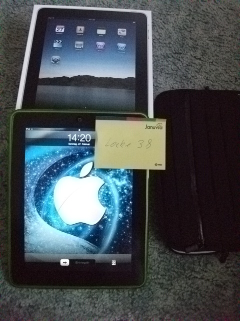 Lieferumfang: OVP;Rechnung;Orginalzubehör:Silikonhülle und Schutztasche von Belkin ;das iPad natürlich auch