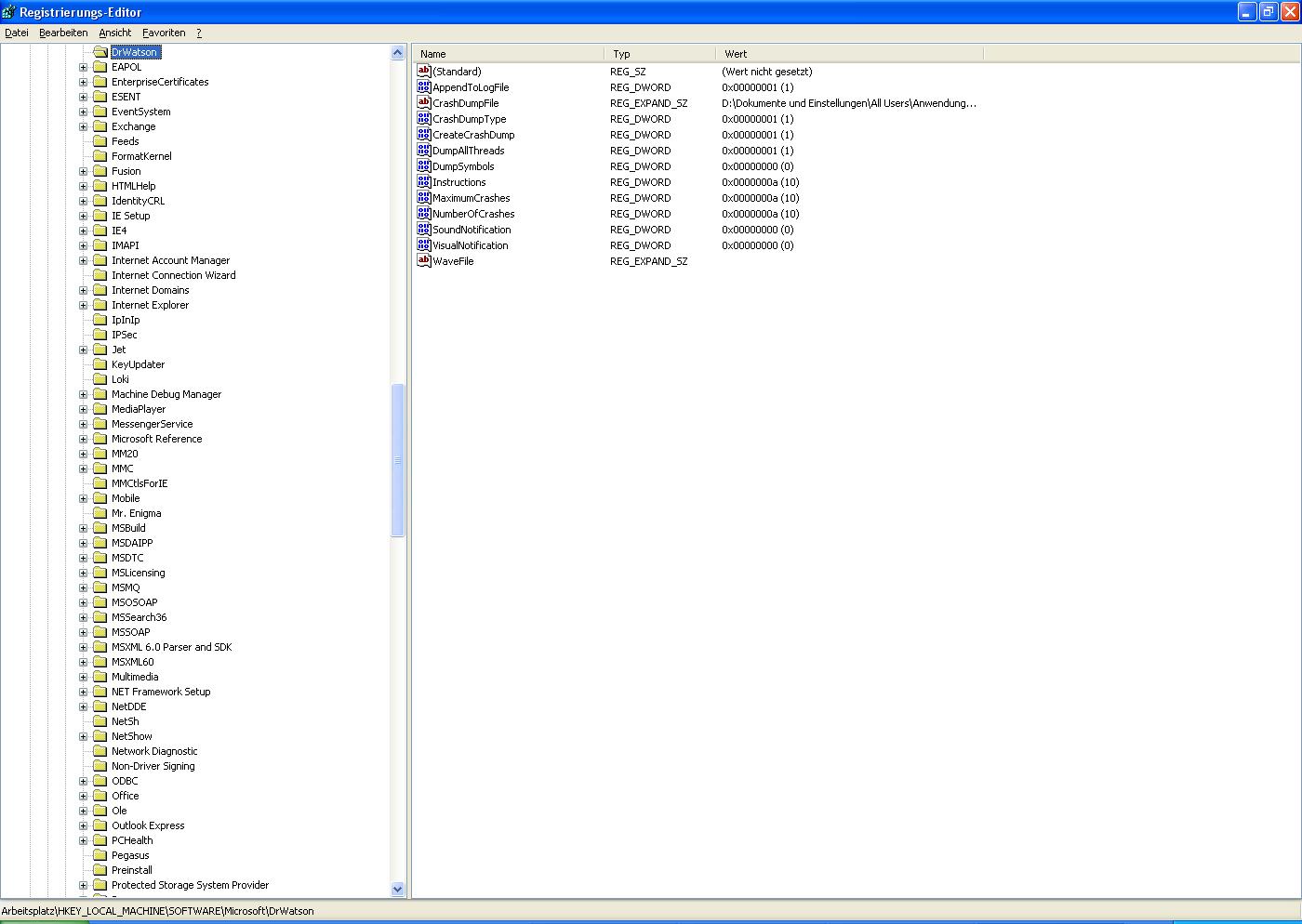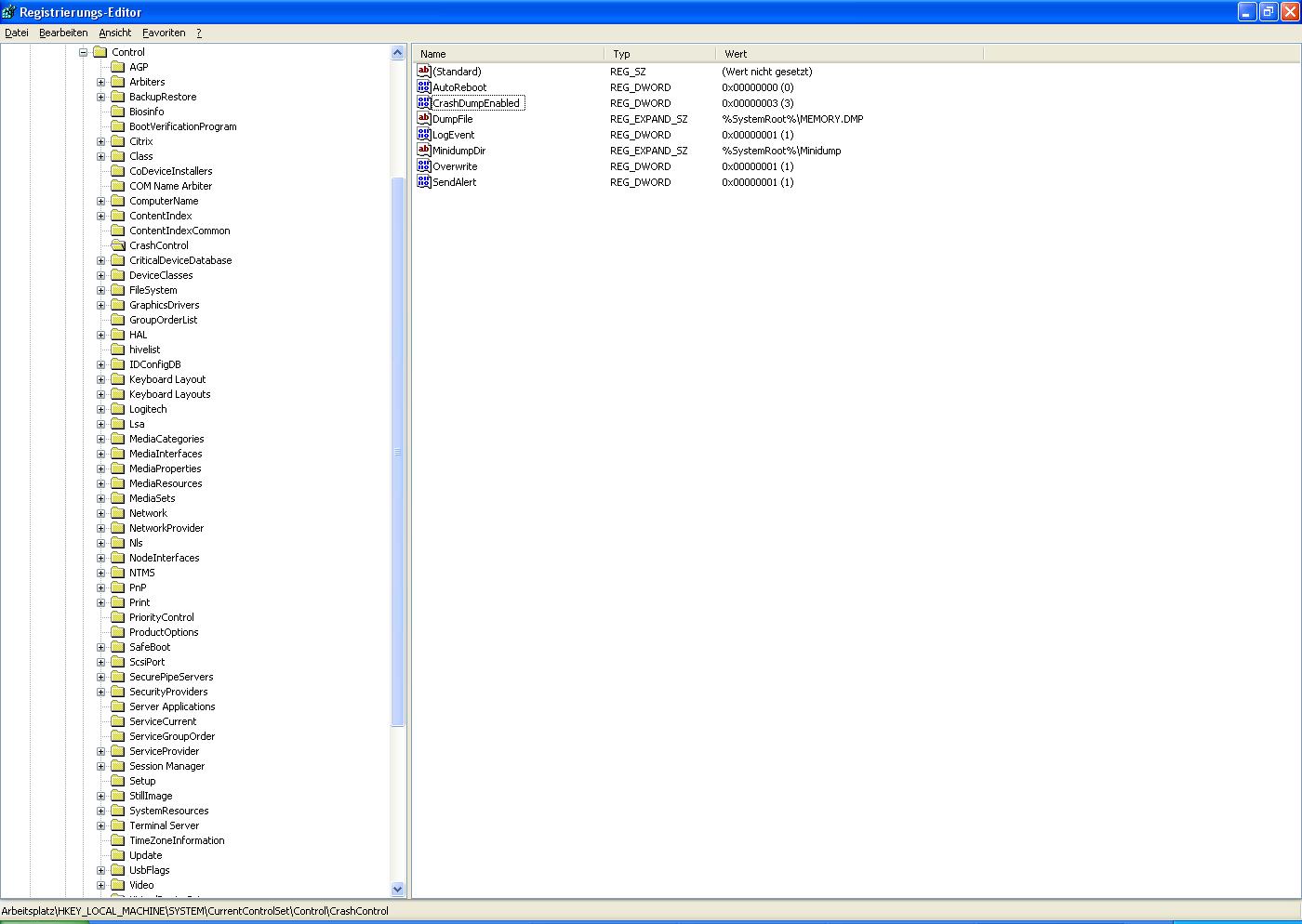 Pfad: HKEY_LOCAL_MACHINE\System\CurrentControlSet\Contro l\CrashControl