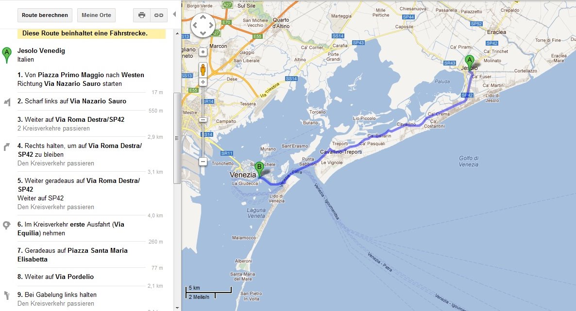 Die Fähren nach Venedig fahren alle 20Min. und die Fahrt durch die Lagunen soll einmalig schön sein.