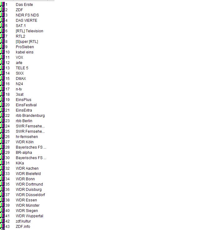 Habe mir jetzt mal ne eigene Senderliste vom Sateliten mit der D-Box gezogen, da sind se dabei. Mein Programm zzm editieren ist DVB-Edit.