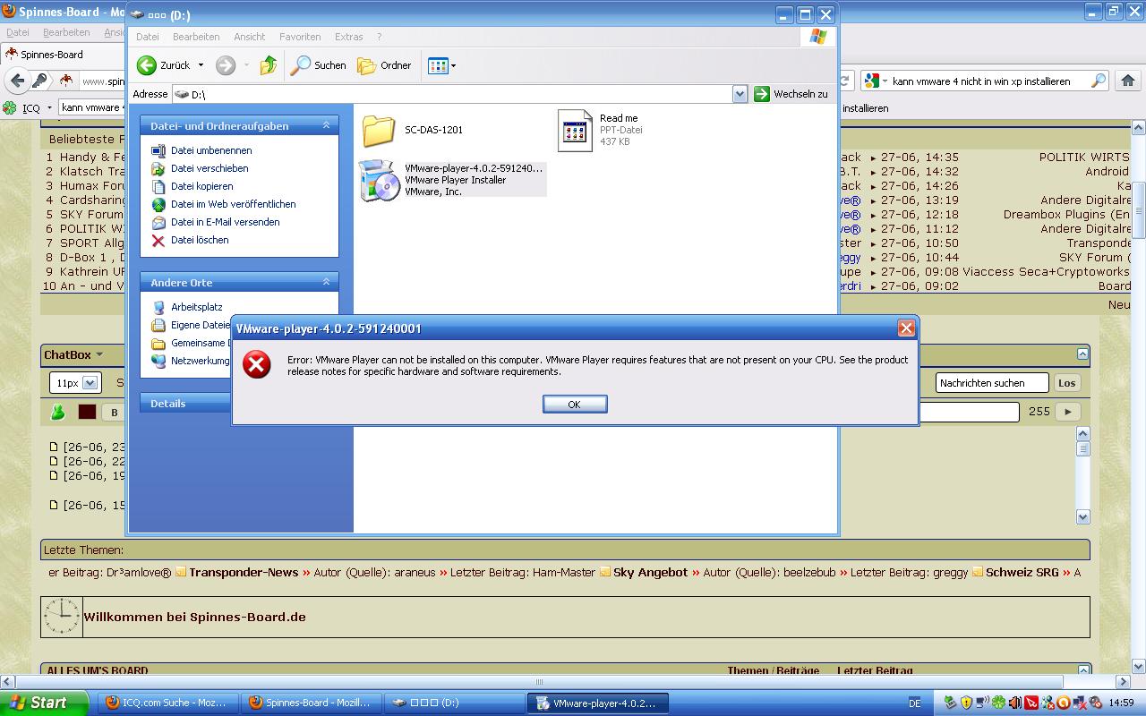 Habe auf meinem Laptop mit xp installiert und möchte vmware4 installieren bekomme diese Meldung