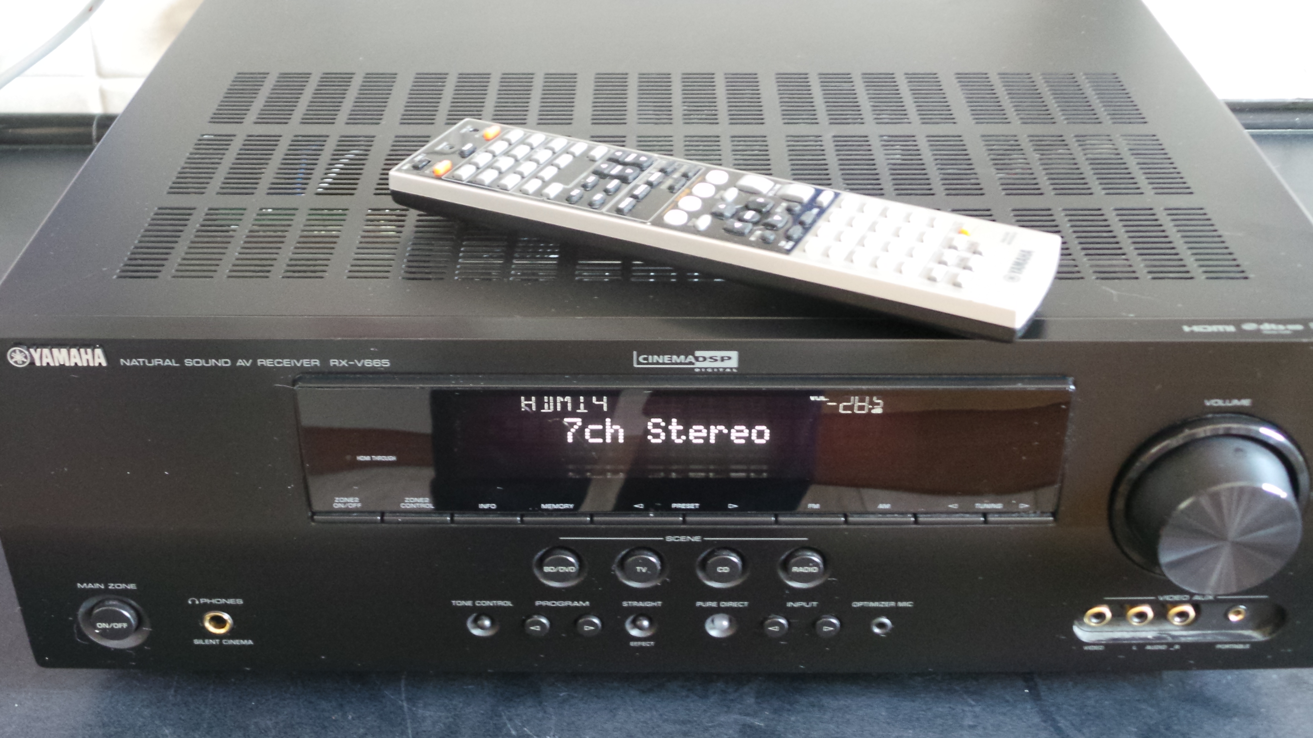 Verkaufe hier einen gebrauchten Yamaha AV-Receiver Typ RX-V 665. Das Gerät hat ein paar kleinere Kratzer, ist aber technisch einwandfrei.