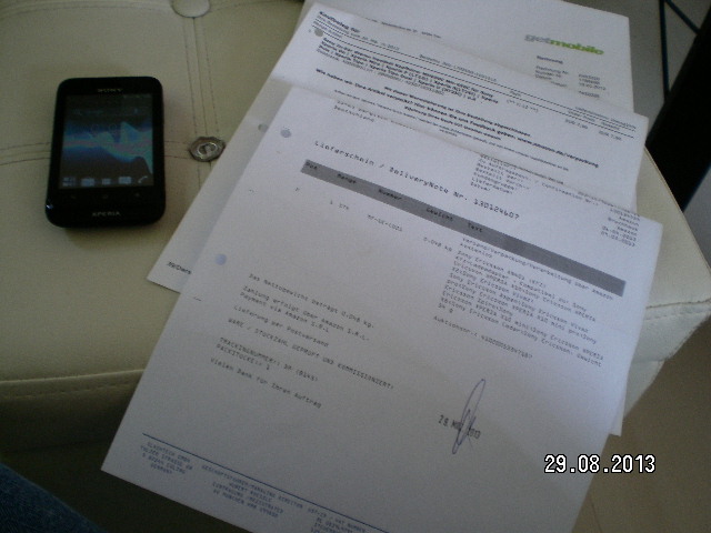inkl. RE/Lieferschein für Headset und KFZAdapter vom 20/29.03.2013