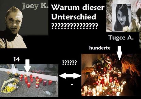 Selbst wenn das linke Foto Kerzen für Joey K. und das rechte Foto Kerzen für Tugce zeigen sollten,