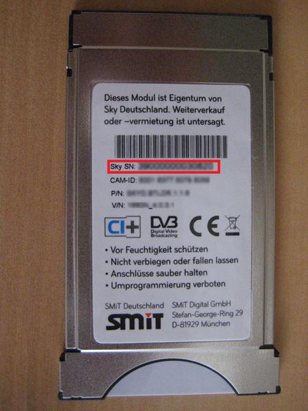 beim externen Sky-Cardreader (also CI-Modul) befindet sich die Serial auf der Rückseite siehe gif