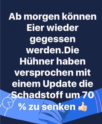 Als er sein fünftes Ei gelegt hat, hört er plötzlich eine Frauenstimme: "Manfred wach auf! Du kackst das ganze Bett voll!"