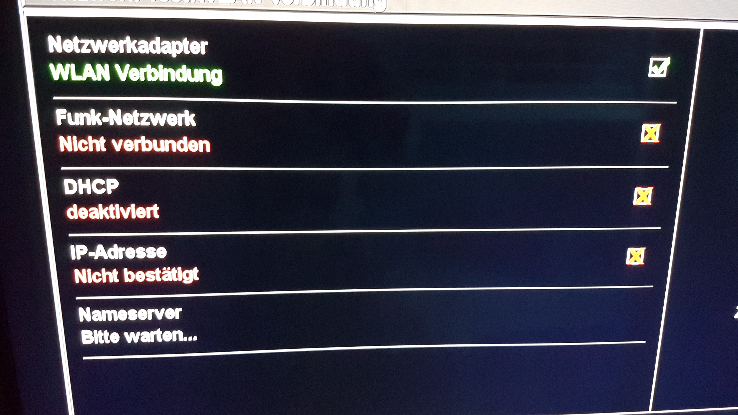 Versuch mal die IP-Adresse automatisch beziehen einzustellen und starte die Box einmal komplett neu.